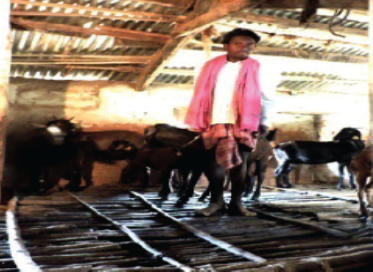 The farmer is rearing Black Bengal breed of goats (52 nos.). The floor of goatery house is made up of bamboo over the cemented pillar at a height of 3 ft over the ground. To climb up the bamboo floor, steps are made from bamboo. All the animals are insured. Routine de-worming is being done in every three month and regular vaccination is followed.