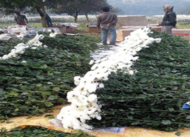 Application of artificial light: Artificial lights applied @ 7500 watt per hectare for six hours after sunset. This improves the size and quality of the flowers
